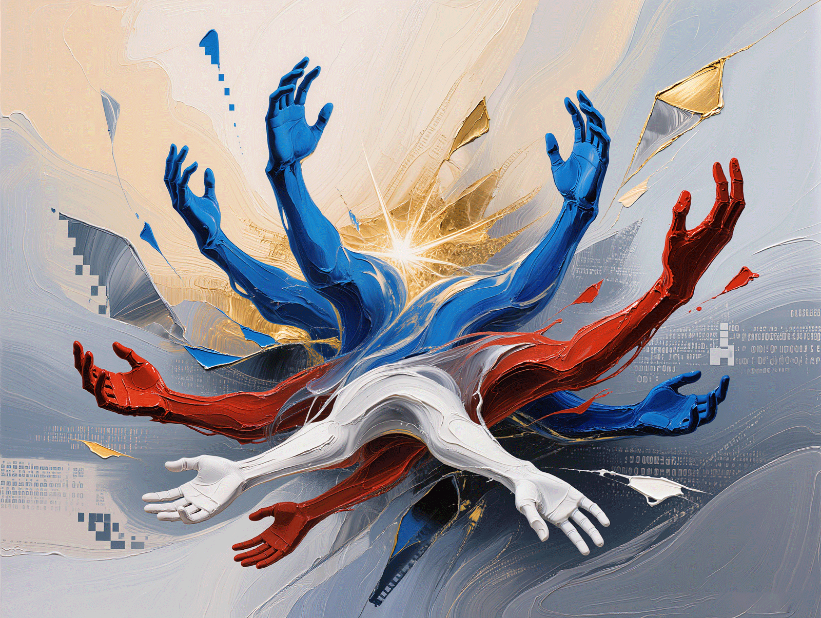 Взрыв цвета и формы — момент выхода за пределы телесного. В этом жесте человек освобождается от материальных ограничений, превращаясь в чистое движение.
