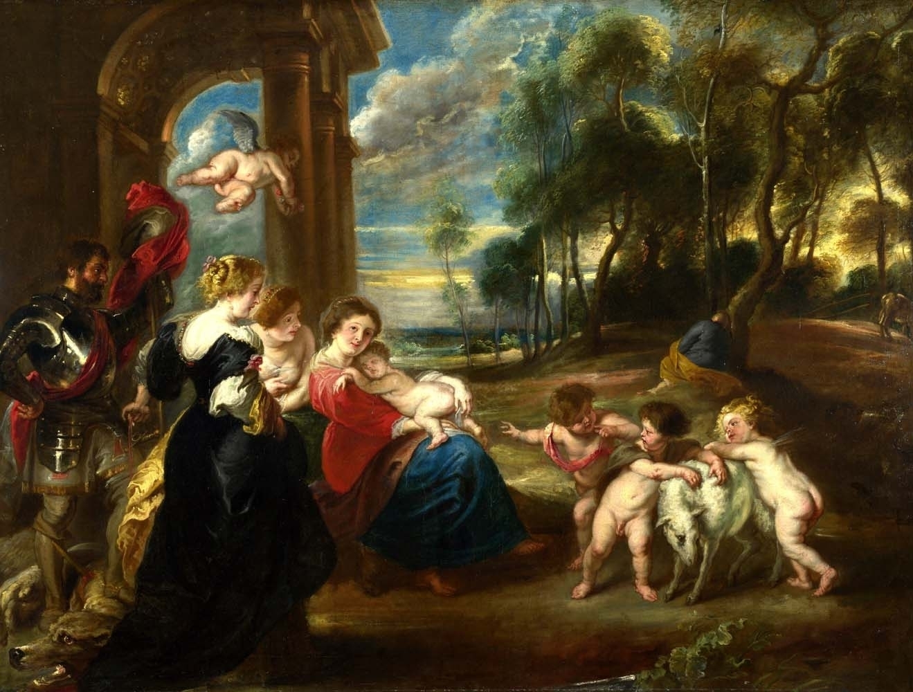 the Studio of Peter Paul Rubens - The Holy Family with Saints in a Landscape